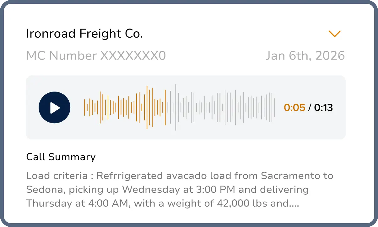 Run more loads per operator by automating carrier outreach, confirmations, dispatch, and in-transit follow-through — without adding headcount.