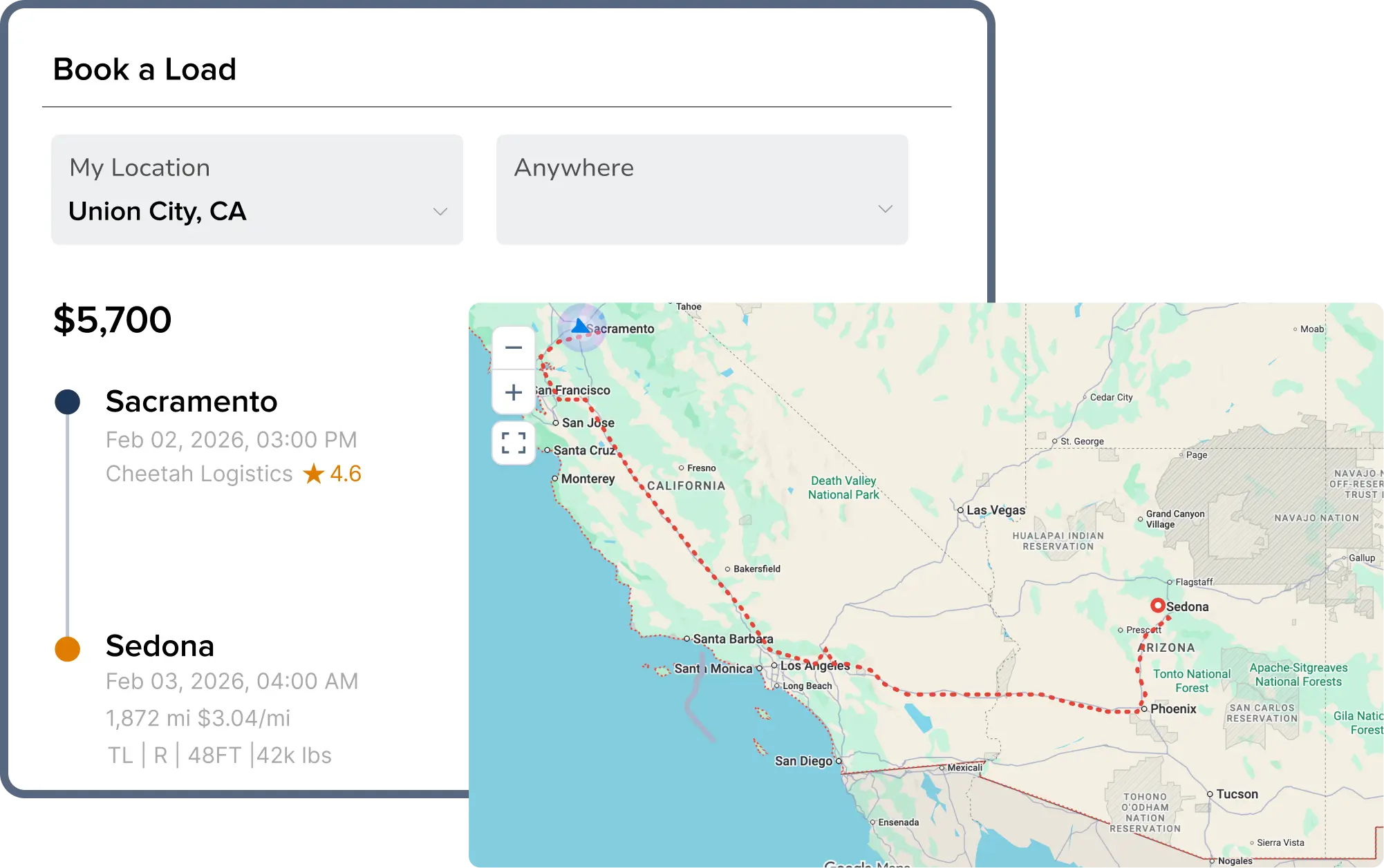 You will have the ability to find and book loads instantaneously from any location. Reduce the empty miles and save on fuel and the environment.
